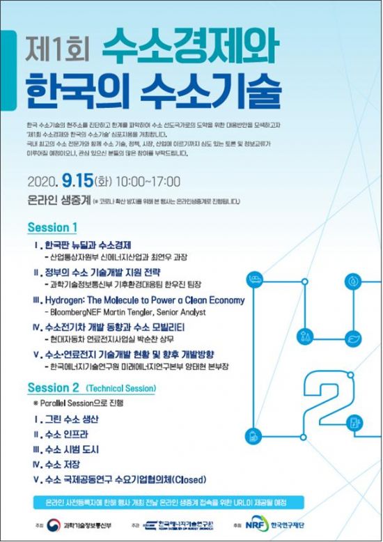 과학기술정보통신부는 15일 '제 1회 수소경제와 한국의 수소기술 심포지엄'을 열었다. 행사는 과기정통부의 수소기술 협력 네트워크 운영 과제를 수행하고 있는 한국에너지기술연구원이 주관해 마련됐다. 신종 코로나바이러스감염증(코로나19) 확산 방지를 위해 참석 인원은 최소화했으며, 온라인으로 생중계됐다.