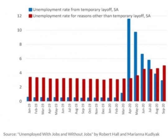 트럼프 대통령의 문제는 이런 상태라면 대선 패배 가능성이 높다는 것입니다. 경제는 엉망입니다. 9월 고용지표를 보면 구직자 증가세는 꺾이고 영구실업자가 늘고 있습니다. 개인소득은 감소세로 접어들었습니다. 이에 따라 정부의 이전소득에 지탱해 이뤄져온 민간 소비마저 꺾이는 판입니다.