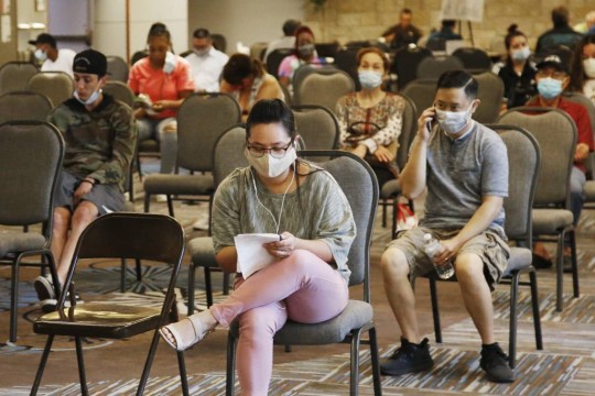 미국에서 실업수당 청구를 위해 대기 중인 사람들