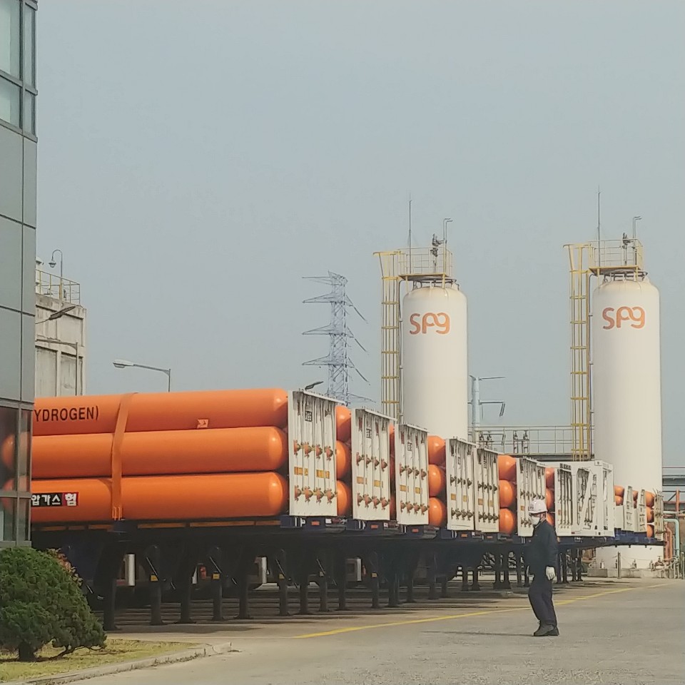 당진 수소 출하센터 인근에 주차된 튜브트레일러/사진=안재용 기자