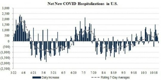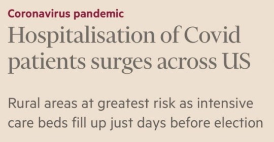미국의 코로나 하루 확진자의 7일 평균은 6만9000명을 넘어 또 다시 기록을 세웠습니다. 입원률도 5% 이상 높아진 주가 36개에 달합니다. 파이낸셜타임스에 따르면 일부 지역에서는 의료시설의 부족 현상이 나타나고 있습니다.