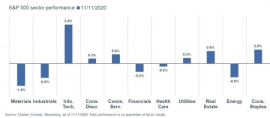 지수에서 보듯 기술주, 성장주가 선전하고 가치주와 경기민감주가 약세가 보인 겁니다. 지난 9일 월요일에 화이자의 백신 소식이 나온 뒤 이틀간 급등했던 성장주가 후퇴하고 기술주가 재부상한 것입니다.