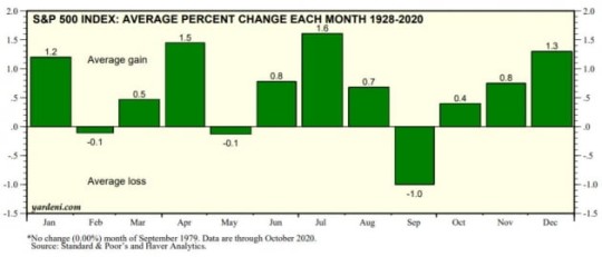 통상 이 맘 때면 상승세가 이어지곤 했습니다. 야디니 리서치에 따르면 1928년 이후 3&P 500 지수의 월간 수익률을 따져보면 11월(0.8%)과 12월(1.3%), 1월(1.2%)은 3개월 연속 상승했으며, 석달간 합계 수익률도 연중 가장 높습니다.