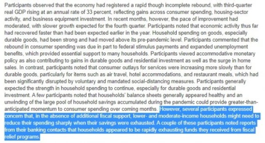 미 중앙은행(Fed)는 또 다시 강한 경제 지원 의사를 드러냈습니다. 이날 11월 연방공개시장위원회(FOMC) 회의록이 공개됐는데요. 위원들은 경제가 더 악화될 가능성을 우려하면서 자산 매입 방법의 조정에 대해 논의한 것으로 드러났습니다. "자산매입의 속도와 구성을 즉각 조정할 필요가 없다고 판단했다"며 결론을 내지는 않았지만요.