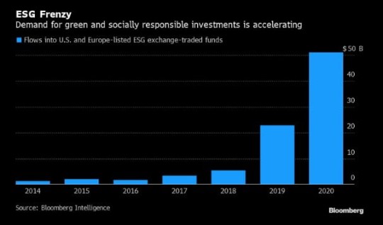 ESG(환경·사회·지배구조)는 각광받는 새로운 테마입니다. 관련 펀드에는 많은 돈이 몰려들고 있습니다. ESG는 미국의 바이든 행정부의 기조와도 맞아떨어집니다.