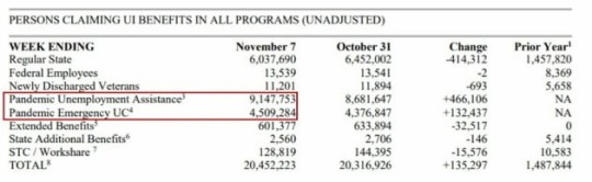 우선 지난주 실업급여 청구건수는 전주보다 3만 건 늘어난 77만8000건으로 집계됐습니다. 지난 7월 이후 처음 2주 연속 증가한 것입니다. 특히 계절조정을 하지 않은 실제 건수는 7만8000건 늘었습니다. 특히 연방정부가 지난 3월 경기부양책으로 마련한 팬데믹 실업급여 프로그램에도 약 31만 명이 새로 신청했습니다. 각 주가 최대 26주 지급하는 정규 실업수당을 모두 소진한 장기 실직자에게 주는 특별 프로그램입니다. 이를 포함하면 이번 주에만 약 110만 명이 새로 실업급여를 신청한 것이죠.
