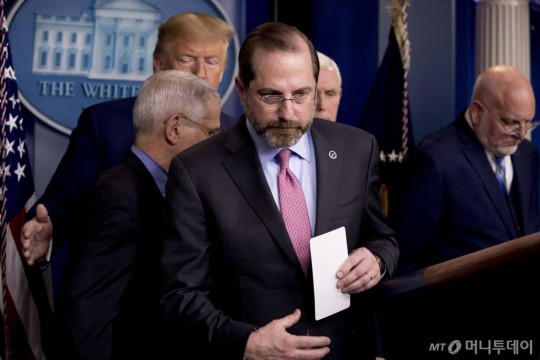 [워싱턴=AP/뉴시스]앨릭스 에이자 미 보건복지부(HHS) 장관