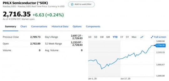 이날 전반적으로 기술주들이 약세를 보이면서 나스닥은 하락했습니다. 하지만 강세를 보인 기술주들이 있습니다. 바로 반도체주입니다. D램 회사인 마이크론의 경우 전날 2000년 이후 20년 만에 최고가에 등극했고, 이날도 3% 올라 상승세를 이어갔습니다. 주당 69.11달러로 마감했으며 지난 한 달간 35% 올랐습니다. 2000년 닷컴버블 당시 90달러까지 치솟았던 마이크론이 20년 만에 다시 70달러 선에 바짝 다가선 겁니다.