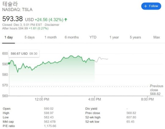테슬라는 이날도 4.3% 오르며 593.38달러로 마감했습니다. 골드만삭스가 테슬라에 대한 투자의견을 중립에서 매수로 바꾸면서 목표가를 기존의 455달러에서 780달러로 높인 영향이 컸습니다. 현 주가보다 30% 이상 더 오른다고 밝힌 겁니다. 골드만삭스는 “전기차로의 전환 속도가 생각보다 빨라지고 있다. 향후 2년간 테슬라가 공급할 차량은 올해 목표치인 50만 대보다 훨씬 더 늘어날 것이라고 밝혔습니다.