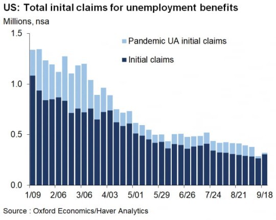 전주(∼18일) 신규 실업급여 청구건수는 이전 주보다 1만 건 늘어난 35만1000건으로 집계됐습니다. 2주 연속 증가세를 보이면서 시장 예상치 32만 건을 크게 웃돌았습니다. 다만 캘리포니아주에서 행정적으로 밀려있던 실업수당 청구가 지난주 처리된 게 영향을 준 것으로 분석됐습니다. 캘리포니아에선 지난주 2만4000여 건의 신규 청구가 있었습니다.
