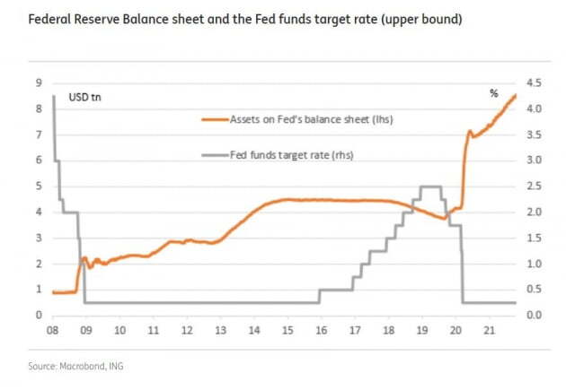 ING도 지난주 "꽤 오랫동안 2022년 하반기 두 차례, 즉 9월에 한 번, 12월에 한 번 금리 인상을 예측해 왔다. 하지만 인플레이션 압력이 명백히 높아지고 있는 것을 고려할 때 Fed가 더 공격적 태도를 보일 위험이 커지고 있다. 내년 7월부터 시작해 9월, 12월 등 세 차례 금리 인상을 하는 쪽으로 점점 더 기울고 있다"라고 밝혔습니다.