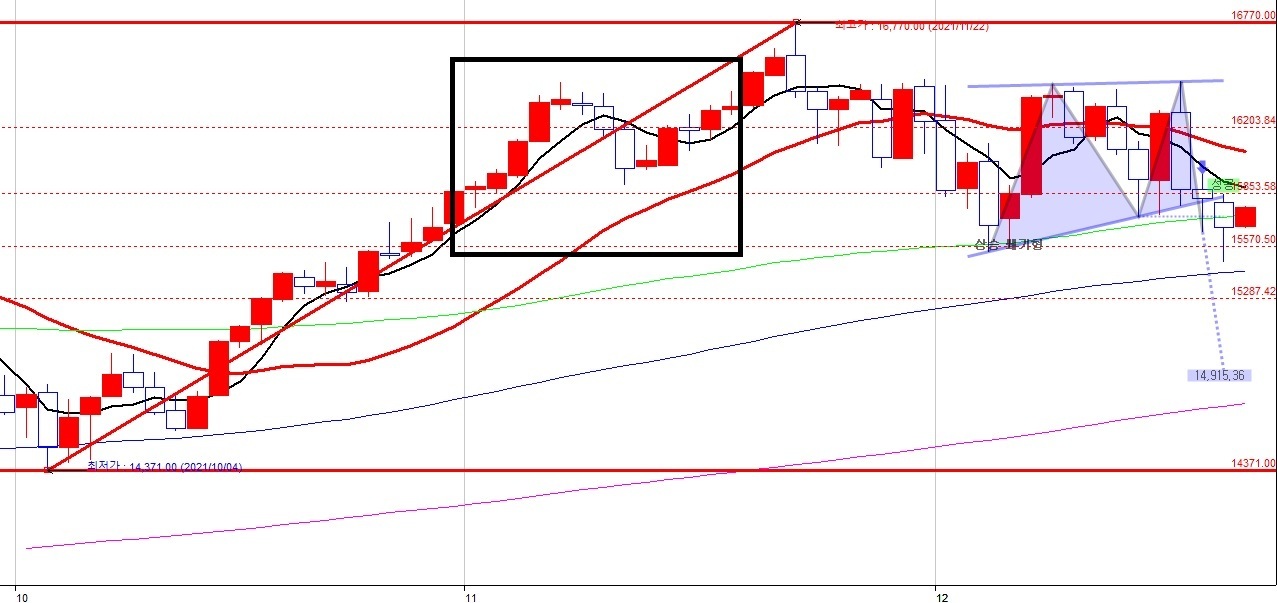 추가하락하면 15163pt 인데, 어제 저점에서 바닥 다지기 형성되면