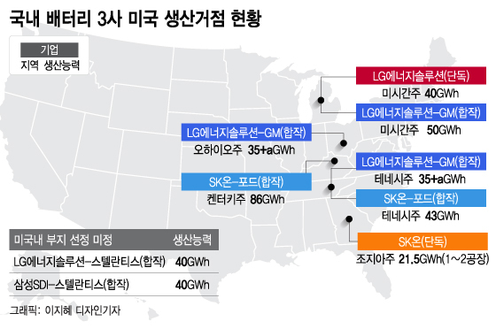 지난해 9월 SK온은 포드와 합작키로 한 '블루오벌SK' 생산공장 부지를 테네시주와 켄터키주로 선정한다고 밝힌 뒤 양사가 13조원이 넘는 자금을 들여 총 129GWh의 생산능력을 확보한다고 밝혔다. 이는 같은 해 5월에 밝혔던 계획 대비 두 배가 넘는 수치였다.