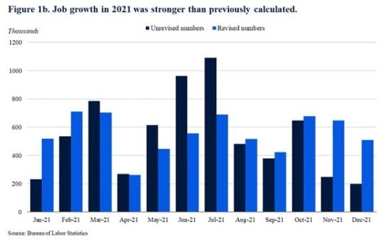 월가 관계자는 "사실 지난 두 달간 고용보고서가 나올 때마다 월가 예상보다 너무 낮아 충격을 줬었는데, 오늘 보니 그건 집계 잘못이었다"라며 "작년 11월부터 석 달 동안 매달 이렇게 평균 50만 개 이상 일자리가 생겼다면, 오미크론 충격이 사실상 없었던 것이 아니냐"라고 반문했습니다.