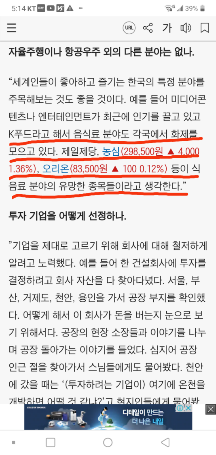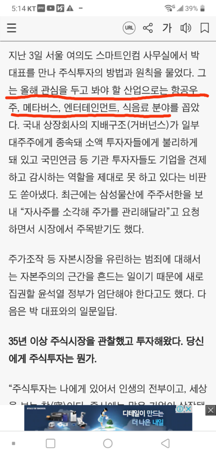 산책 나갈 시간도 안됐는디.. 벌써 눈이 떠지네. 이거 어째 노년의 생활이 마니 일찍 찾아온거 가터. ㅡ.ㅡ 지난번에 귀국했을 때는 각종 투자관련 유튜브를 증말 많이 봤었으. 그런데 어느순간 회의감이 들더이다. 문제는 정보가 부족해서가 아니라 정보가 너무 넘쳐나서 오히려 나으 판단력을 흐리게 한다고나 할까. 지금은 거으 안봄미. 뒹국투자 관련하여 성균관대학원 안유화교수 찾아 보는 정도. 소위 말하는 유튜버들, 좀 안습인 경우가 많더이다. 낵아 주식 에널리스트(ANAList)들을 항문쟁이라고 비꼬듯이.. 저렇게 해서 돈이 될까라는 안타까운 생각이 들게 만드는 안습 유튜버들도 많더라는 야그임미. 길타구 낵아 천상천하 유아독존식으루다 내 생각에만 파묻혀 사는 것은 아녀. 우야튼 피와 살이 되는 귀중한 정보를 찾기 위해 나름의 방식으로 최선을 다하지. 오늘은 어째저째 서핑을 하다가 주식농부 박영옥의 인터뷰 기사가 나으 안테나에 걸려들었삼. 이분은 낵아 믿고보는 얼마 안되는 유명 투자자중 한사람임미. 맨날천날 개미덜 푼돈이나 탐하느라 언론플레이에 여념이 읎으신 짐나졌으 할배보다야 백번천배 낫삼. ㅋㅋㅋ 아래는 이분 인터뷰기사 발췌임미. |
