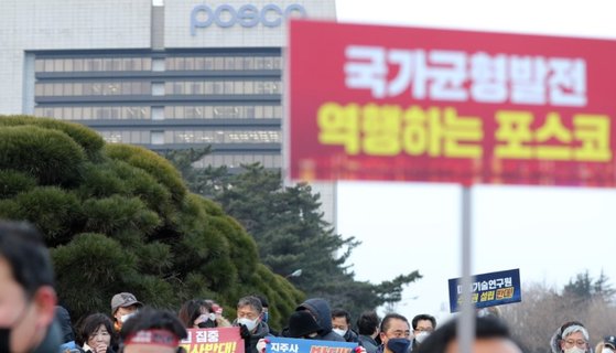 포항 시민과 단체들도 최정우 회장의 ‘일방통행’에 집단적으로 반발하고 있다. 강창호 포스코 지주사·미래기술연구원 포항이전 범시민대책위원회 위원장은 “오는 21일 최정우 회장 퇴진을 위한 총궐기 대회를 준비하고 있다. 1만 명의 규모로 포항 포스코 본사 앞에서 진행할 계획”이라고 말했다.