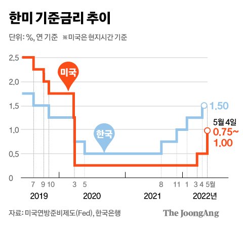 주요국 중앙은행은 앞서거니 뒤서거니 하며 금리 인상의 고삐를 당기고 있다. 미 연방준비제도(Fed)는 지난 4일 미 연방공개시장위원회(FOMC)에서 기준금리를 0.5%포인트 인상(빅스텝)했다. 22년 만에 빅스텝을 밟은 것이다. 지난 3월 0.25%포인트 인상에 이어 연속으로 금리를 올렸다.