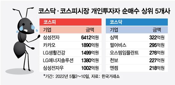 인플레이션 우려 속에서 미국이 기준금리 인상 기조를 이어가 증시가 연일 하락장인데도 개인투자자들은 개의치 않고 저가매수에 나섰다.