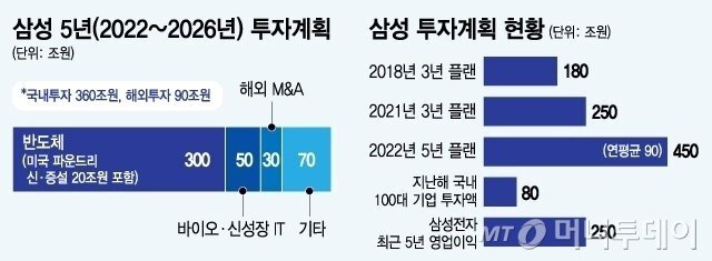삼성그룹이 반도체·바이오·신성장 IT 등 미래 신사업에 향후 5년간 450조원의 대규모 투자를 단행한다. 반도체 초강대국 도약을 위한 큰 그림 속에 한국의 소부장(소재·부품·장비)이 핵심 수혜주로 부상했다.