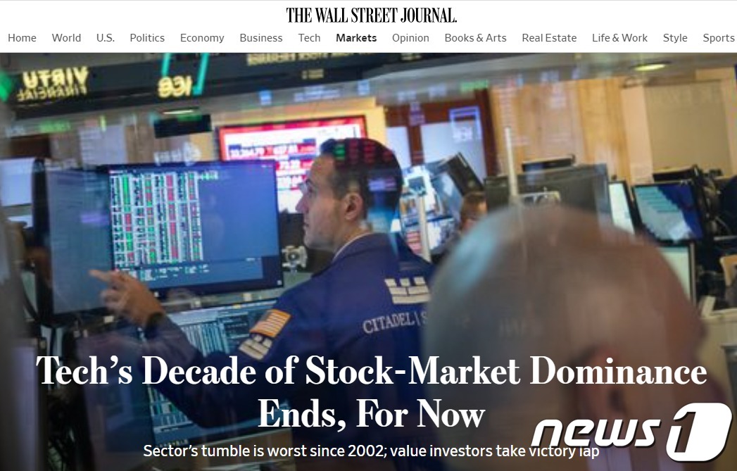 (서울=뉴스1) 박형기 기자 = 미국 기술주가 2002년 이후 최고 하락률을 기록하고 있지만 아직 저점이 아니라고 월스트리트저널(WSJ)이 8일(현지시간) 보도했다.