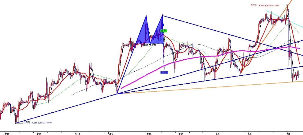 6월초부터 이어온 상승 추세 지지대를 하회하면