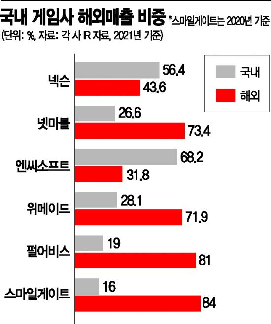 다른 게임사들도 높은 해외 매출 비중 덕분에 반사이익을 누릴 것으로 보인다. 지난해 기준 위메이드 72%, 펄어비스 81%, 스마일게이트 84%(2020년 기준) 등이 높은 해외 매출 비중을 기록했다. 이들 게임사 대부분이 북미 시장을 집중 공략하고 있는 상황이다.