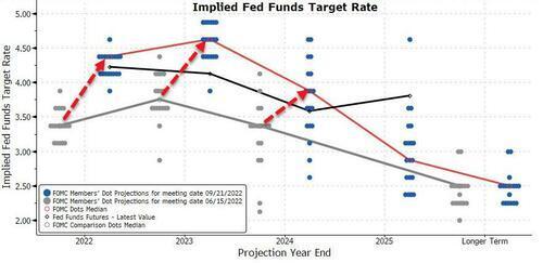 연준은 금리를 (예상대로) 75bp 올렸지만 그 금리 궤적 기대들을 강경한 방향으로 심하게 이전시켰다.