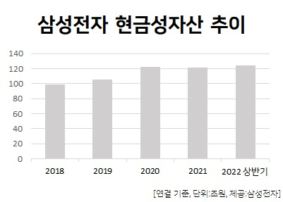 삼성전자의 현금성자산은 올 2분기 말 약 124조원으로 당장 급하게 현금이 필요한 상황은 아니다. 하지만 환율 변동성 심화 등 글로벌 경제 환경 악화에 대비해 국책은행의 크레디트라인부터 뚫어놓는 모습이다.