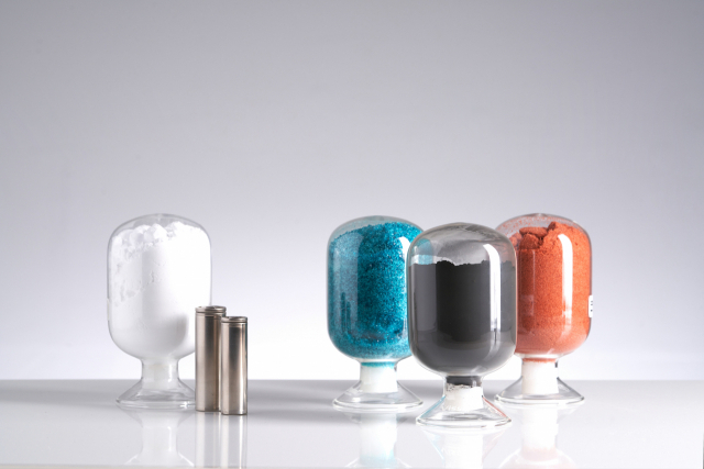 리튬(왼쪽부터), 원통형 배터리, 니켈, 양극재, 코발트. 사진제공=포스퓨처엠