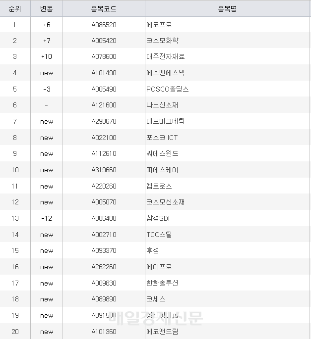에코프로·코스모화학 순매수