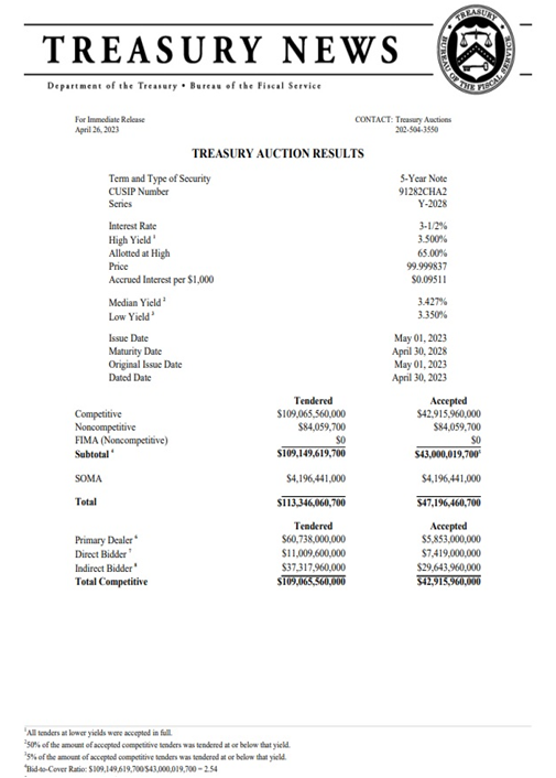 APR 27, 2023 국채 발행 끝나가고