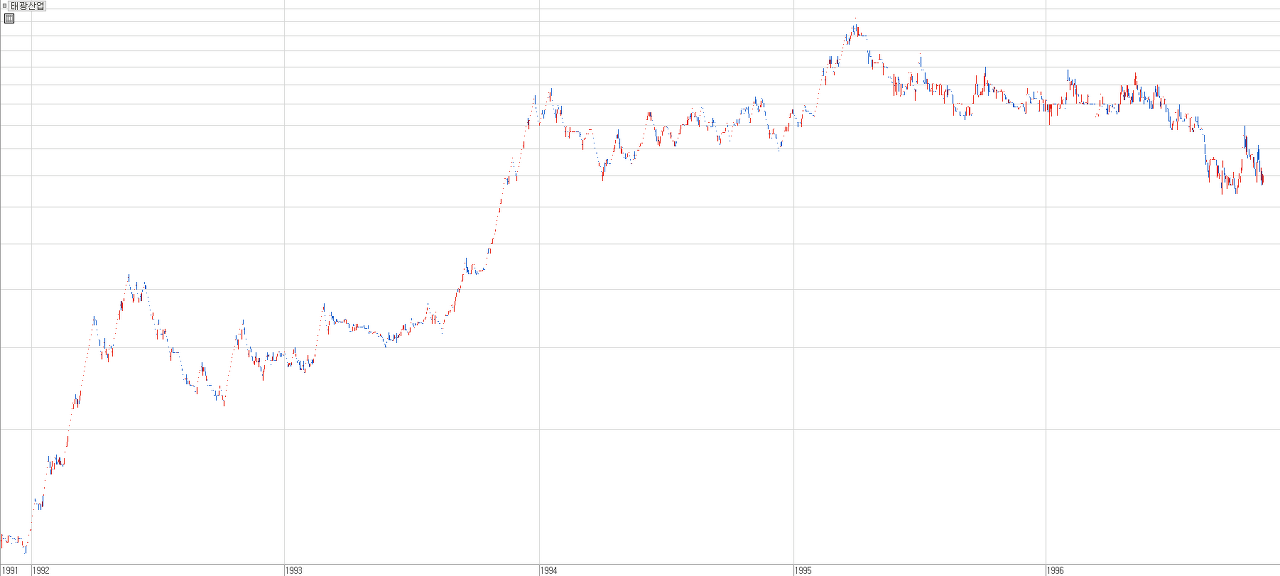 [ 1990년대 초중반 저PER주 열풍 속에 폭등했던 당시 태광산업의 주가 ]