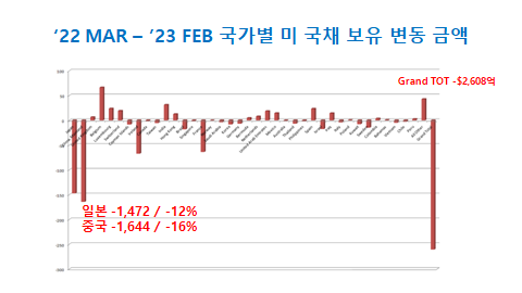 국채 공급량이 급증할 때, 해외 투자자들이 그만큼 진입할 여유가 없었을 것이고반면에 이탈하는 중국쪽 물량은 만기 재투자 안하면서 자동으로 자금 회수를 했었을 것이고요.