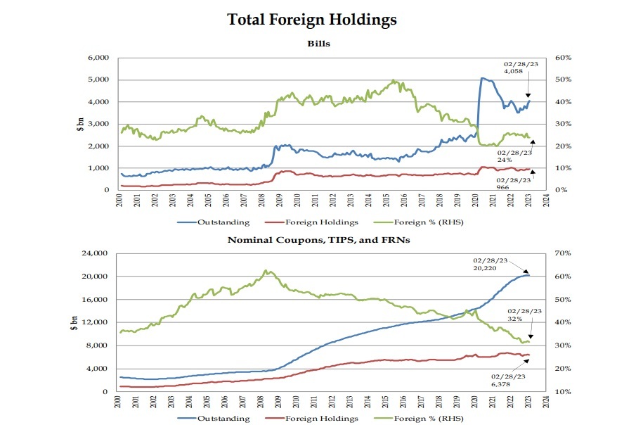 미국 자체 발행량이 너무 많으니까 해외 비중이 줄어들게 됩니다.