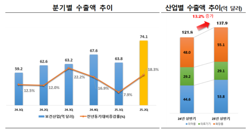 2025년 상반기 의약품·의료기기·화장품 등 보건산업 수출 실적. 한국보건산업진흥원 제공