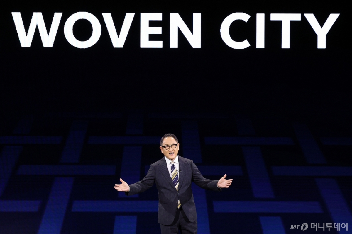 (라스베이거스(미국)=뉴스1) 토요타 아키오 토요타자동차 회장이 세계 최대 IT(정보기술)·가전 전시회 'CES 2025' 개막을 하루 앞둔 1월 6일 오전(현지시간) 미국 네바다주 라스베이거스 만달레이베이 컨벤션센터에서 열린 토요타 프레스 콘퍼런스에서 기조 연설을 하고 있다. 2025.1.7/뉴스1 Copyright (C) 뉴스1. All rights reserved. 무단 전재 및 재배포, AI학습 이용 금지. /사진=(라스베이거스(미국)=뉴스1) 신웅수 기자