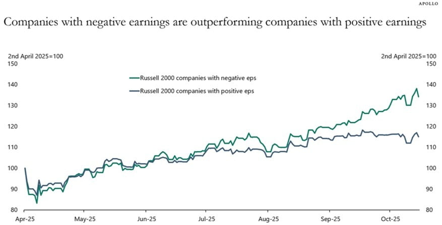 ③ 트럼프 행정부의 감세 정책과 투자 세제 혜택 확대, 금리 인하 효과도 주가를 뒷받침하는 요인들입니다. 특히 내년부터 금리 인하 및 감세 효과가 본격적으로 반영되면 지금 부채 비율이 높거나 수익성이 안 좋은 기업들도 사정이 좋아질 수 있습니다. 골드만삭스는 최근 적자 기업들이 증시에서 초과 성과를 내는 데 대해서도 이런 완화적인 거시환경에 대한 기대감을 시장이 선제적으로 반영하고 있기 때문이라고 분석합니다.