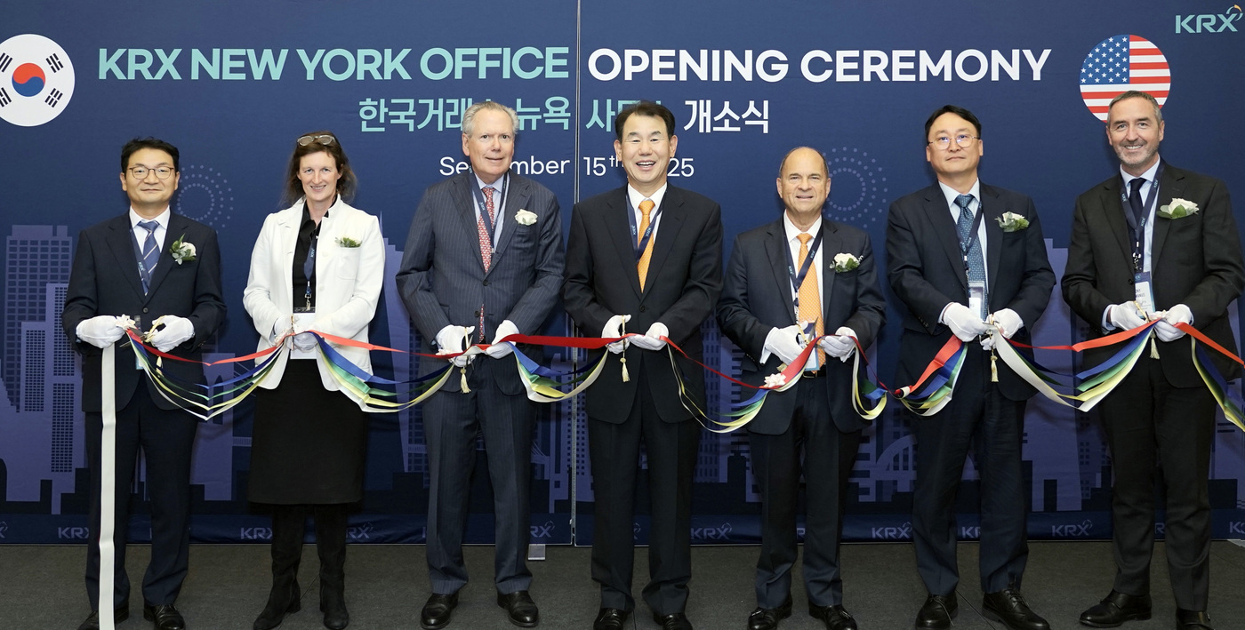 KRX뉴욕사무소가 올해 9월 15일(현지시간) 미국 뉴욕 맨해튼에 문을 열었다. 이로써 거래소는 아시아(싱가포르), 중국(베이징), 유럽(런던), 북미(뉴욕) 등 글로벌 4대 권역에 거점을 완성했다. 신병묵 뉴욕사무소장이 초대 사무소장을 맡았다.