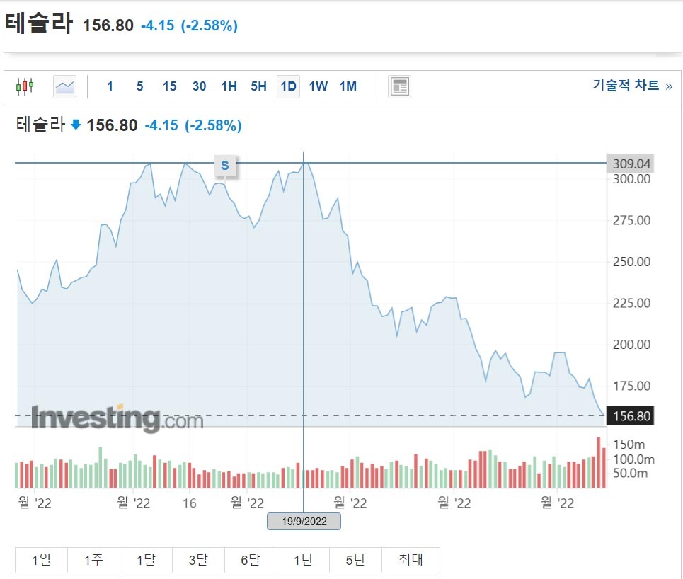 왜냐하면 경기불황으로 재고가 쌓이고 일론머스크의 트위터 인수와 기행으로 테슬라 경영에 어려움이 있어서다.
