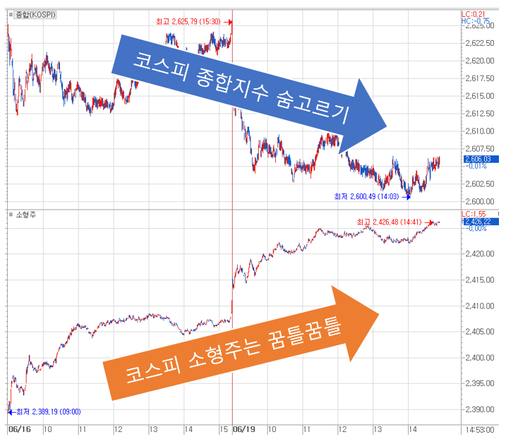 이달 6월 9일까지만 하더라도 코스피 2,600을 넘어 순식간에 2,700p, 2,800p에 이를 것만 같았지만 이후 주식시장이 내리는 것도 아니요, 그렇다고 상승하는 것도 아닌 지루한 하락세가 반복되고 있습니다.