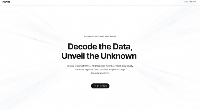 LG AI연구원은 대규모 라이선스 검토를 진행해야 하는 산업 현장과 연구 기관, 법률 지원 조직에 확대 적용할 수 있는 '데이터 컴플라이언스 에이전트'가 AI의 법적 안정성을 높이는 데 이바지할 수 있음을 증명한 연구성과도 공개했다. 또 글로벌 표준 기술로 자리 잡을 수 있도록 글로벌 법률 전문가들과 협력을 강화한다는 계획이다.